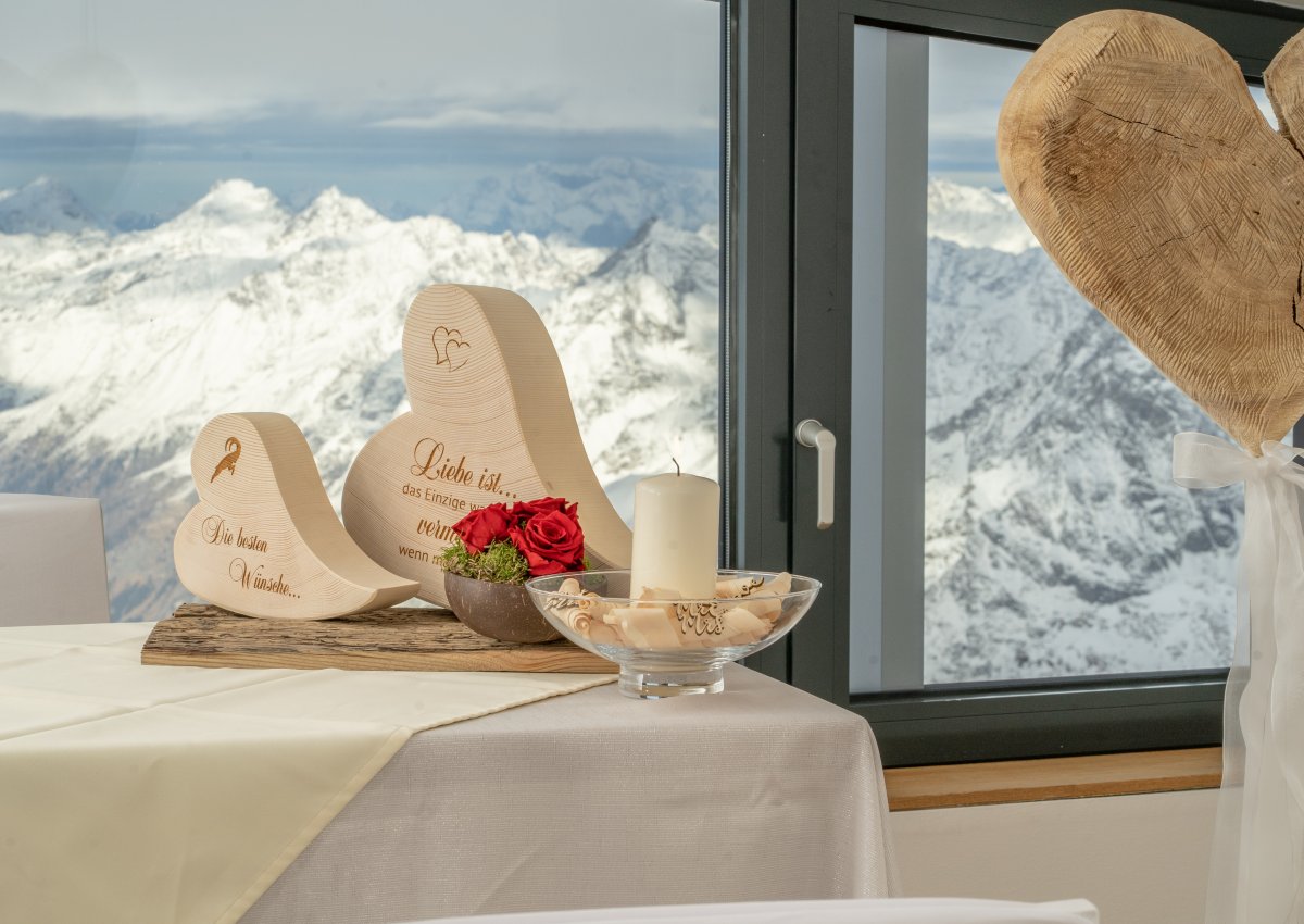 Wenn sich neben den geladenen Gästen auch die umliegenden Dreitausender ein Stelldichein geben: Eine Hochzeit am DACH TIROLS ist außergewöhnlich und unvergesslich. Das Café 3440 am Pitztaler Gletscher ist eine märchenhafte Kulisse für alle Paare, die ihre gemeinsame Zeit gerne in der unberührten Natur und am Berg verbringen.