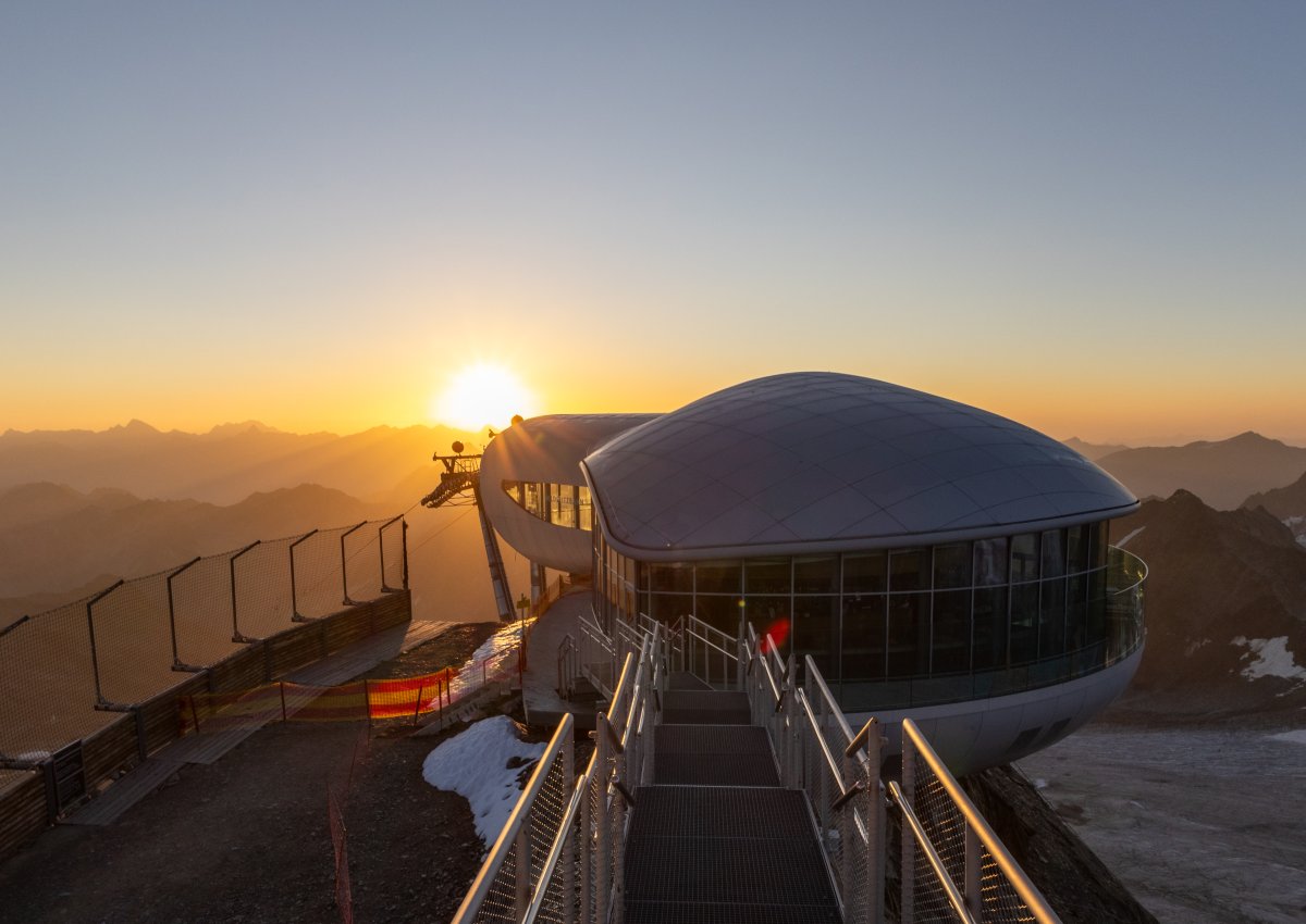 Am Grat des Hinteren Brunnenkogels wird ästhetische Architektur mit hoher Ingenieurskunst verbunden. Das Café 3440 – Bergstation, Gastronomie und Aussichtsplattform zugleich – fügt sich formschön in die Umgebung ein und trotzt dank seiner ausgeklügelten Bauweise den Naturgewalten am Gletscher. So lässt sich das Alpenpanorama sicher und komfortabel genießen.
